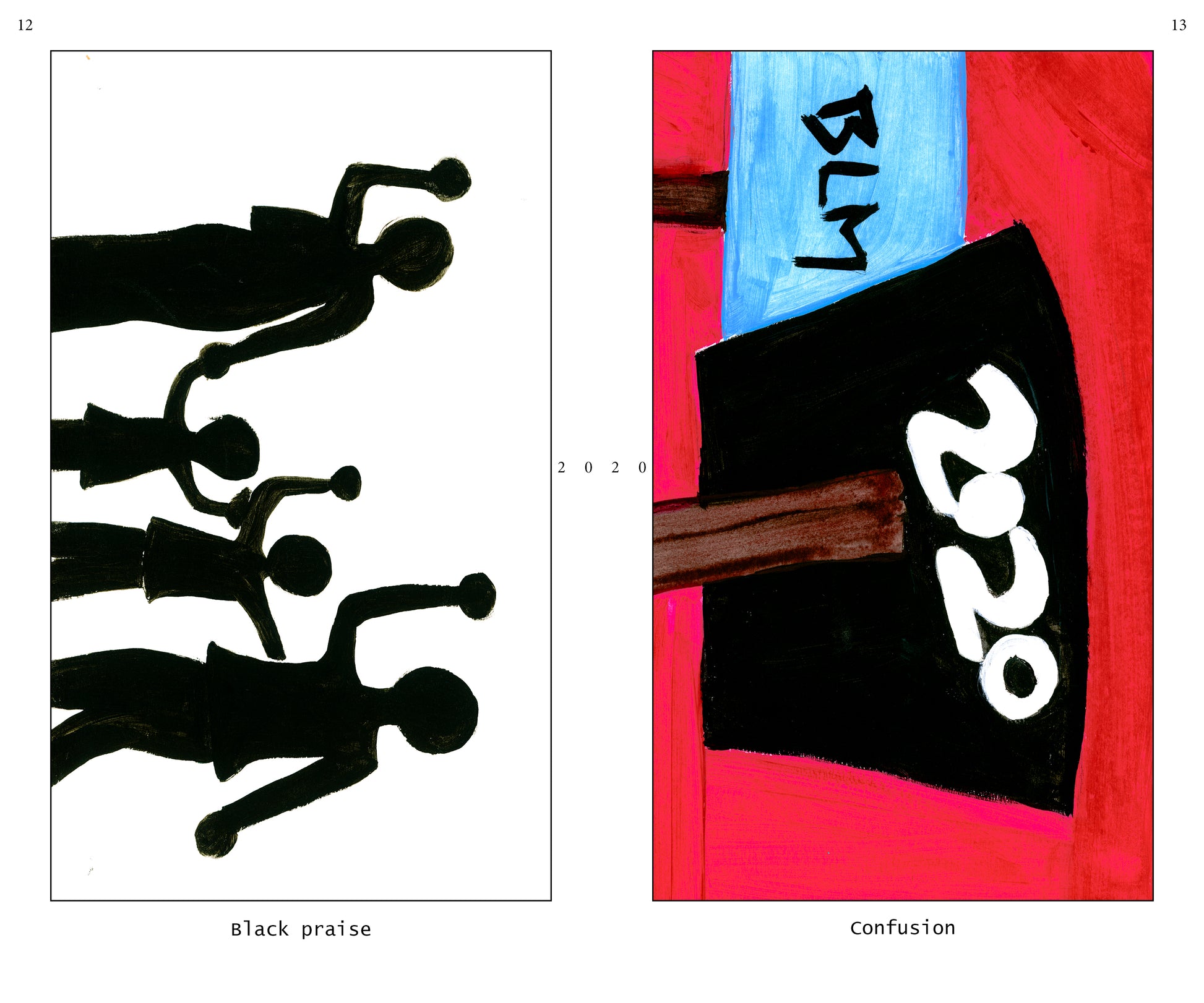 The work started in 2020, during the ‘COVID-19’ pandemic and the ‘Black Lives’ movement. A time of social unrest, propaganda, and civil war! The division started with; who’s vaccinated and who is not, then who wears the mask and who doesn't, who is the good cop and who is the bad cop, who is black and who is not. I remember attending the BLM protest, but then at the same moment quickly realized I had no idea what this movement was really about. From shouting “I can’t breathe” to “Black Lives Matter”, while wearing a mask in downtown Montreal… At first, my intent was to express the events, but over time it expanded into an eye-opener documentary piece.