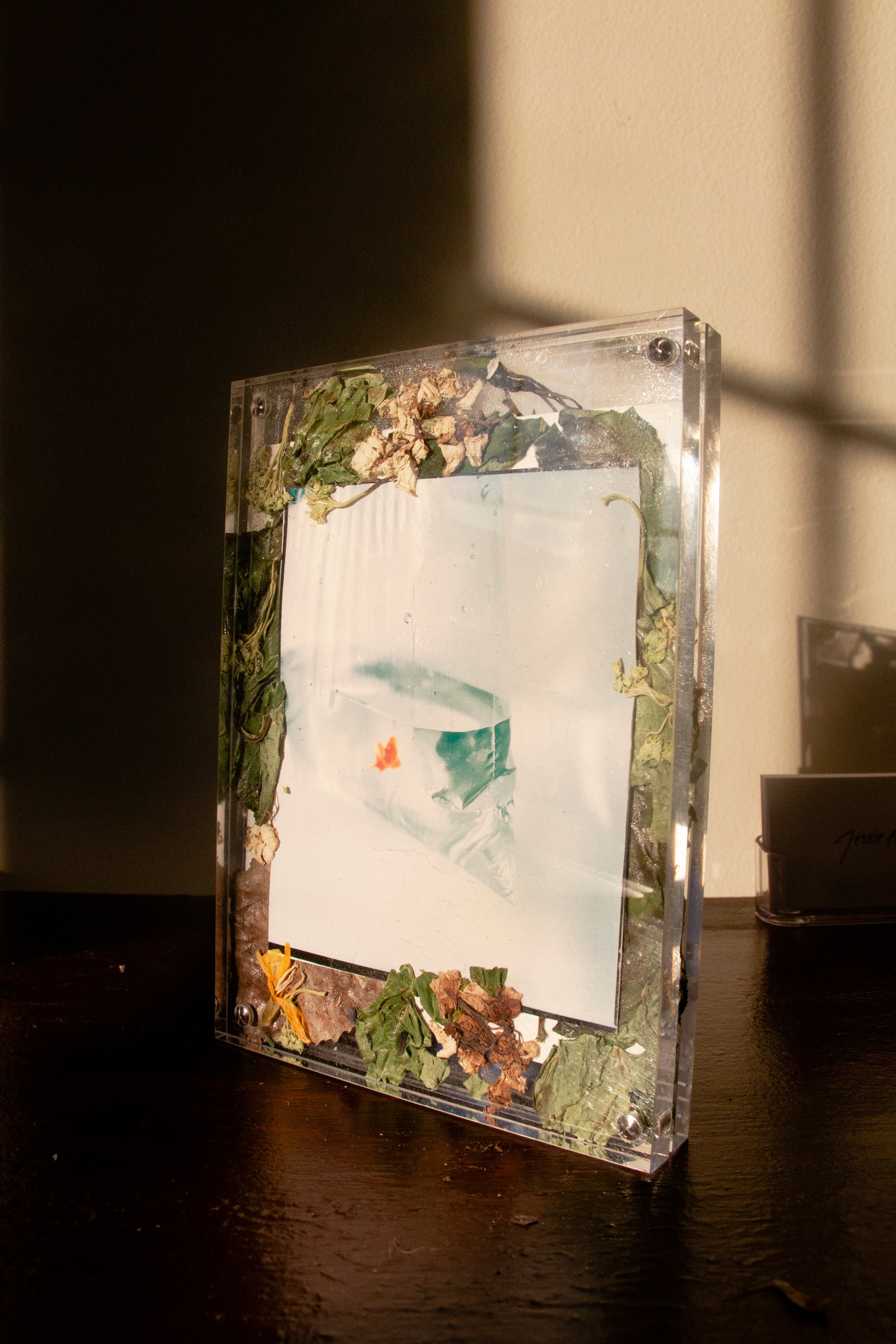 Every frames are uniquely made, an arrangement of real flowers onto a cotton paper, sealed into an acrylic frame.